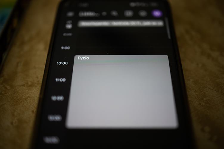 Domlouvám si termín k rehabilitačnímu lékaři. Doba zkracování, mytí, hraní, i práce na fotkách. Snažím se do sebe něco nacpat. Další platíčko snědené. Tam mezi listy vykukuje pupen. Udělám si pár lekcí.