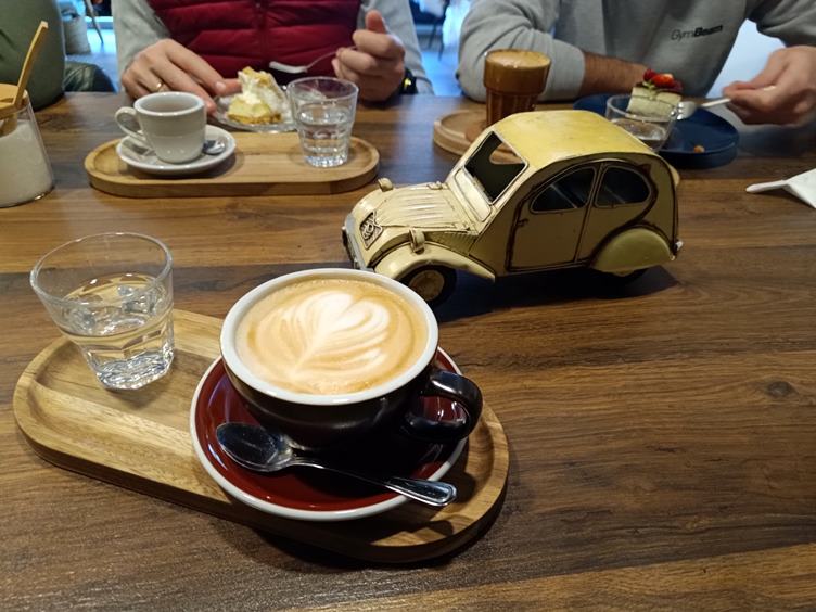 Do práce som šiel pešo. Po obede sme zašli s kolegami na kávu. Ľudka robila deťom lievance.