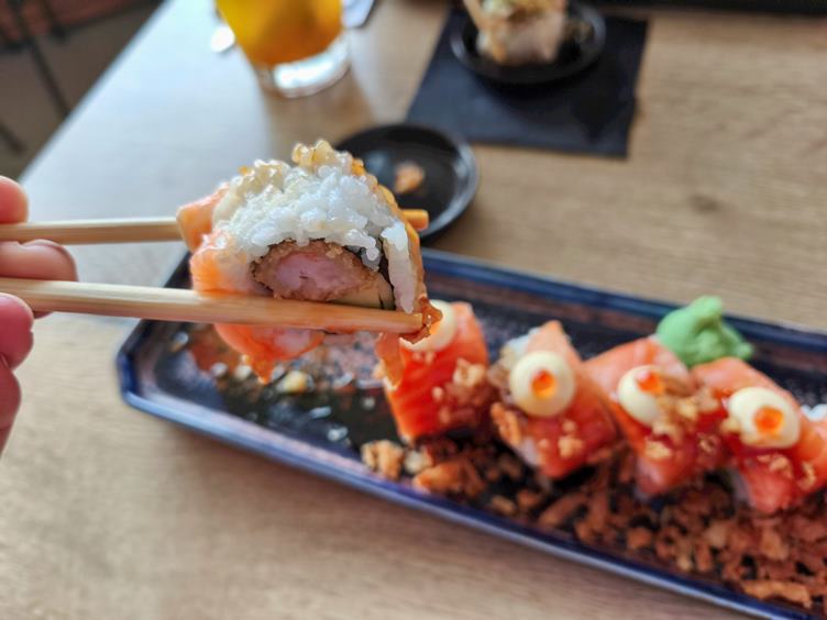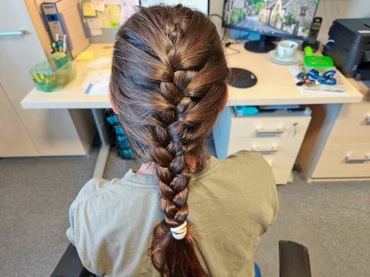Raňajky. Zaplietla som kolegyňke vrkoč. Po obede nejaké pochôdzky a po práci na sushi. Mňamka to bola.