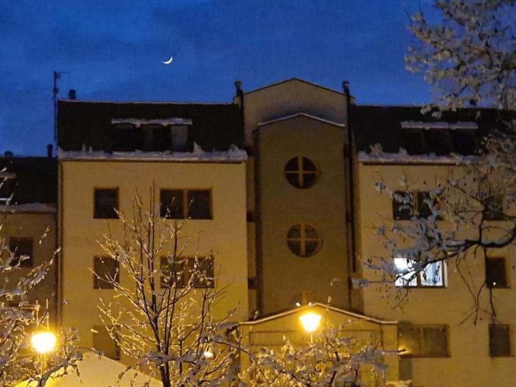 , dost dobré … už je večer … a srpeček nad domem …