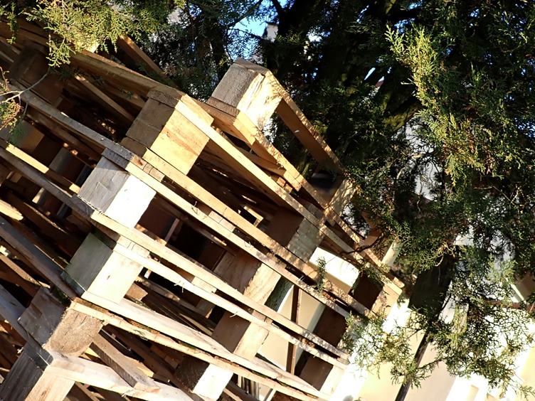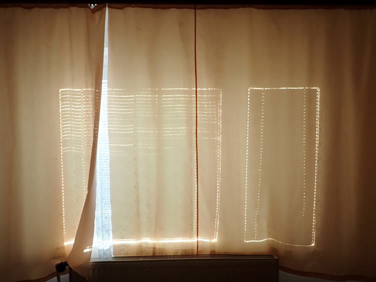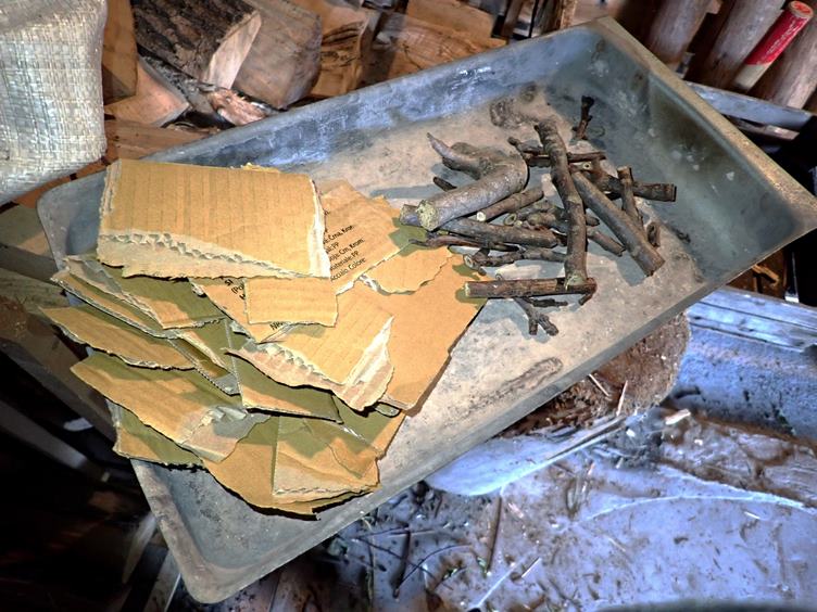 Ráno na teploměru, u kamen a u okna... Kostičky ovoce na stole... Oběd... Králik v trojobalu... Palety... Ořechy za plotem u sousedů... Oheň v kamnech...