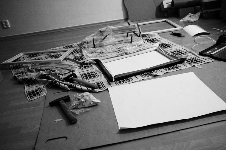 ... kolegové už jsou v práci... s příchodem podzimu to u nás vypada jak v neuservisu... až z toho ma sef autoparku zvyšený tlak.... kdepak ta naše optika asi je ?... a zase na rehabce... a pak rychle vyčůrat... po praci si chystám ramy.. a vrhám se do tištění a napínaní pláten.. po par hodinách už mi to jde jan na drátkach, ale dosly připínáčky.... a tím končí můj první měsíc z WoL