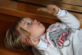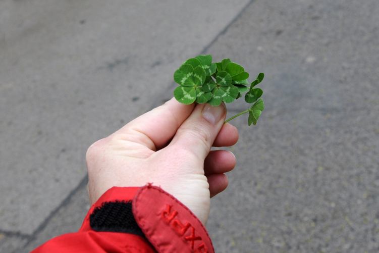 První máj, je třeba najít rozkvetlý strom :-) Svátek si užívá hlavně náš pes, vyrážíme na procházku. Hraní s klackem vysílilo, až je z toho jazyk na vestě. V trávě na mě vykoukla trocha štětí, trhám čtyřlístek a vidím další..nakonec je z toho pěkná úroda. Návrat domů, tradiční poštěkání se sousedem a malá podvečerní návštěva