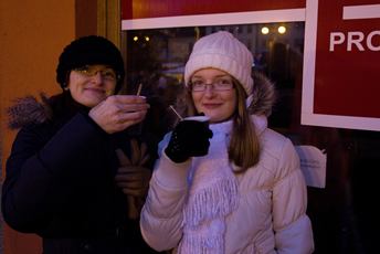 1.Z noční chumelenice už zůstalo jen trochu sněhu na autech. 2.Mám nové bačkorky! 3.Tak schválně, co vyhraje? 4.Jdeme se podívat na rozsvícení vánočního stromku. První atrace jsou grilované gazdovské uši. 5.A pak svařáček. 6.Uf, už jsme z té tlačenice venku. 7.Už svítíííí. 8.Minibetlém. 9.Večer se jdu sprchova a vana už je obsazená.