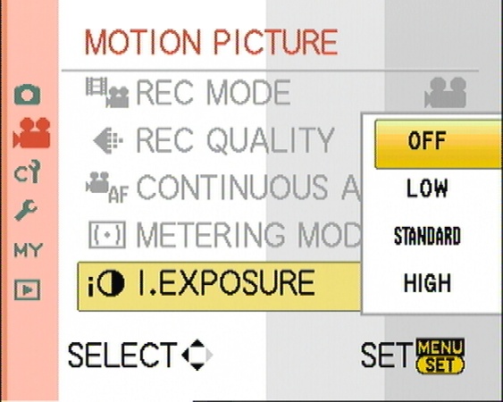 Screenshots of the menu of Panasonic Lumix DMC-GF1