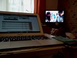 nějak je nás v posteli moc, tak jdu radši pracovat - aj, jsem pěkný zvíře - další zelený smoothie s chia a skořicí - a pak další cvičení - i Jerry s námi obědvá - "Mami, pomůžu ti péct!" - a pak vyblížu misku od tvarohu ;) - čerstvě upečená "puntíkatá" buchta - Myšák na šňůře