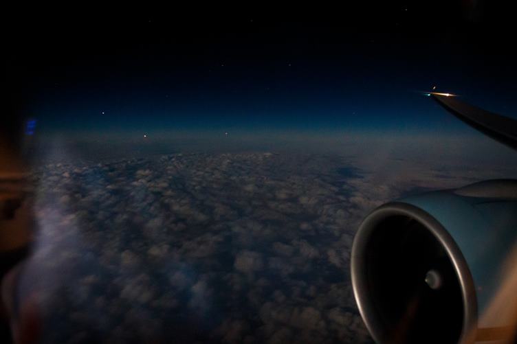 Těsně po půlnoci startujeme. Dnešek má 30 hodin a z toho skoro 12 budeme ve vzduchu. Letíme. Večeře. Spíme. 5 vyšel úplněk. 6 Budapešť a jsme na zemi. Čeká nás náš řidič a vítá nás jiné teploty, než posledních 14 dní. Spíme i po cestě. My už máme dávno večer, ale jdeme pro Maťu do školy a bereme ji na oběd.