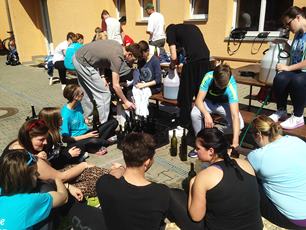 Den začínáme tréninkem. Docela vydařeným, řekla bych. Potom se v hasičce chystají věci na hody. Odpoledne jdeme k Jardovi na kafe a máme tu chlupatou společnost. :) Pozdní odpoledne u rozhledny s osvěžujícím pivkem a pak ještě doma první letošní "opíkačka", samozřejmě za přítomnosti a bedlivého dozoru Míci. :)