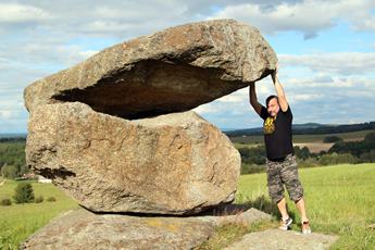 To takhle po ránu vyjdu na balkon, rozhlédnu se po louce pod chatou a mé bystré oko vidí tu úrodu...no, zpočátku je to dobrota...Po poledni přijíždí redakční návštěva, Zdeněk, a věci dostávají rychlý spád, on už je takový...Mandelstein...Paseky...Dobrá voda a Hojná voda...Světví...Žumberk... pivo, rum, fňukna, Myslivec, ohníček a špekáčky...naštěstí jsme jich měli dostatečnou zásobu, protože v nestřeženém okamžiku nám první nachystanou dávku sežral sousedův pes...on je to hodnej pejsek, ale voňavoučký špekáček...tomu se prostě nedá odolat, tomu neodolají ani někteří vegetariáni, že...:-)