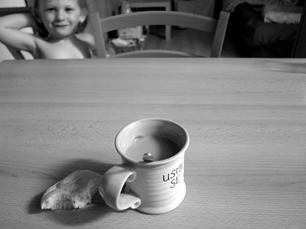 ...snídaně s úsměvem...Maruščina ranní rozcvička u židle...je zima...nákup v Jednotě...kolem toho Trabantu chodím skoro každý den...kululů s balonem...nakrmit rodinu...koupání...a může se zhasnout...