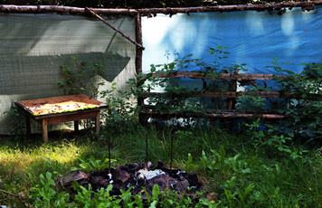 Nádherné letní počasí pokračuje...u Velkého kachního rybníka pochybuji, že tam letos velešínští skauti tábořili, jejich základna chátrá, ale je malebná...Večer dumám a popíjím u ohně, když tu se náhle ze tmy jako duch vynoří Marian...čekal jsem ho shora autem a on přicestoval zdola "dvoutaktem", tedy pěšky od vlaku z Kaplického nádraží...Marian je dokladem, že voňavému špekáčku ani vegetarián neodolá...:-)