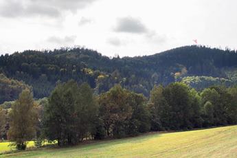 Na protějším Hradišťském vrchu je nová rozhledna...pěkná...ono to tak nevypadá, ale je to taky pěknej krpál...inu jako na rozhlednu...a 120 schodů...Ale na naší chatu z ní není vidět...tak ještě na druhý vršek, odtud vidět je...ale suma sumárum toho mám až nad hlavu...