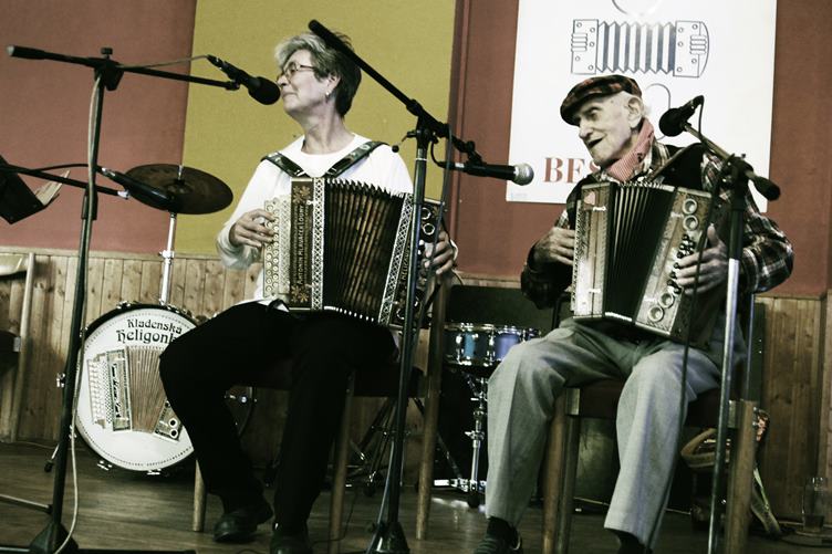 Parádní přehlídka...nejvíc jsem se těšil na Honzu, neviděl jsem ho od roku 1980, byl to tehdy můj kolega na ouřadě a parťák s heligonkou...veterán, prý ještě tři roky a načnu další století, povídal...Po právu se mu dostalo cti přehlídku zahájit...a potom si při pivu a kalíšku spokojeně notoval...Fňukna žije, hrají muži a ženy všech věkových kategorií...ten mladík bravurně zahrál Strausův koncertní valčík Na krásném modrém Dunaji...tak to mi spadla čelist, seděl jsem ve druhé řadě a jeho prsty mě fascinovaly, to jsem ještě na heligonku neviděl...