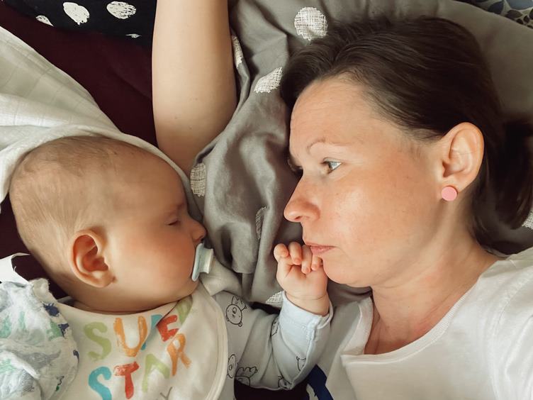 Dneska byla náročná noc, moc jsme nespali. Tomík měl horečku 39,5. Dali jsme mu paralen o půlnoci. Chvíli to vypadalo dobře, ale k ránu se horečka vrátila. Znova ještě před šestou paralen. Miloš se snaží Tomíka uspat, já vyplňuju čas mytím lahviček a je mi na nic. Mám o něj strach :( Už leze sluníčko. To sis tedy kluku můj nadělil dáreček k půlnarozeninám 😒 Miloš jde do práce, Tomík po spánku už vypadá lépe. Před obědem už to na něj zase padá a usnul mi i na posteli, což se obvykle nestává. Zdřímla jsem si tedy taky. Něco ale musí trochu spapat, tak uvařím cuketu a Tomík mi pomáhá a dokonce už si i hraje a směje se. Odpoledne už je to ale zase horší, je unavený a uplakaný, tak vytahuju nosítko a nosím, aby se prospal. Večer ten náš cvrček už řádí a na ochutnání dostal okurku, jede mu. Tak snad už to bude dnes v noci dobré...