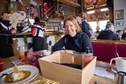 1. Posledný deň na Dachsteine. 2. Ale jazdilo to niektorím rýchlo. 3. A v tejto huťke, to by sa bývalo. 4. Trpaslíci vo výcviku. 5. Naberám energiu. 6. Tiež sa potešíte keď nájdete dvojníka svojích lyží? 7. Ešte pár zjazdov a konééééc. 8. Doma sa chystáme k večeri. 9. A pred spaním ešte prechádzka.