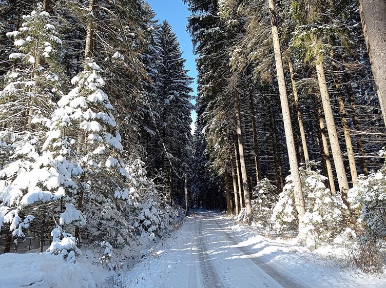 Holub hledá na zastávce něco k obživě. Jedu vlakem zasněženou krajinou do Beskyd. Svítí slunce, ale je zima. Jsem rád, že jsem v teple chalupy. Lorince se v křesle dobře leží. Výborná polévka. Nasněžilo jak je to v ilustracích Josefa Lady. Zorinka mě musí trochu "pohryzt". Z Beskyd jedu domů autobusem.