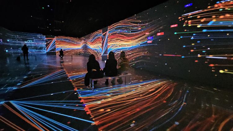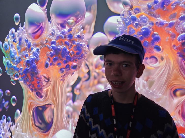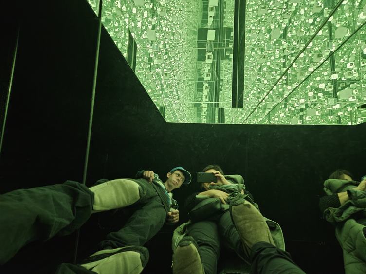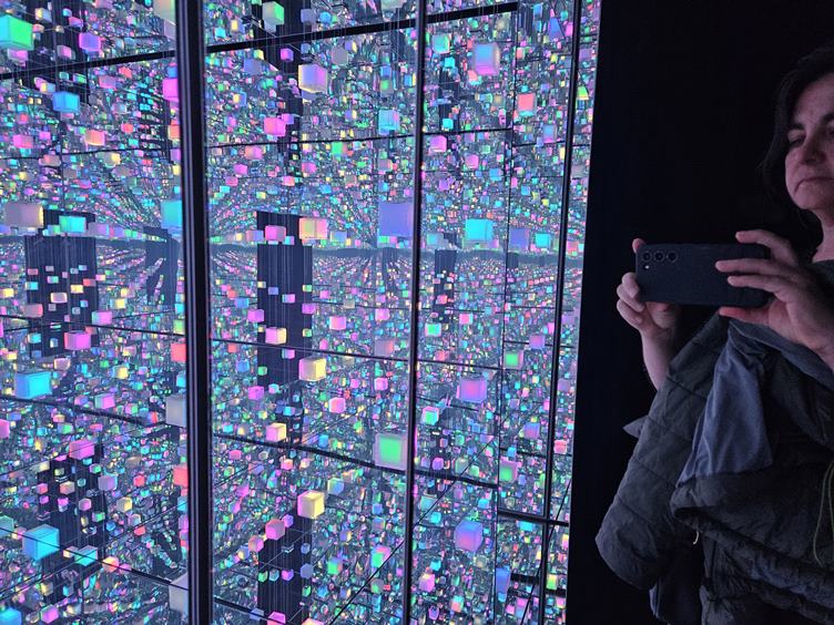 Úterý 7.10.2025 Cestou domů po ránu. Přišly mi pohledy. Odpoledne máme s Bartem plán: novou světelnou instalaci Signal Space Gallery v bývalé Staroměstské tržnici. Je to fakt pěkné, jen Bártovi se tu točí hlava. Večer zoom o zdravém vaření.