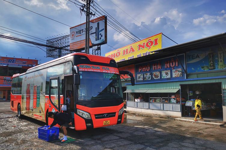 Jedeme lodí a pak autobusem do města Can Tho (delta Mekongu)
