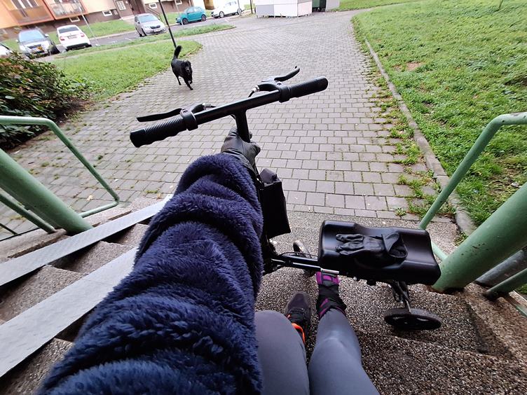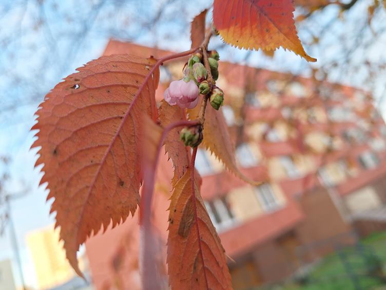 Kolenovrt a moje milované "bezbariérové" schodiště, vyleštím ho pozadím a jedeme!.. Podzim a nebo jaro? Tyhle malé sakurky kvetou několikrát ročně. Nádherné kontrasty po ránu. Vařím, bude játra na slanině. A bramborový placek bez mouky pečený v troubě.. V kuchyni mi sluníčko čaruje.. Našla jsem obojek, tak ho nechávám na viditelném místě. Odpoledne "na besedách" venku s panem sousedem.. A na nákupu, Müsli bych za tu cenu fakt nepozřela, ani kdyby se cena postavila na hlavu🤪