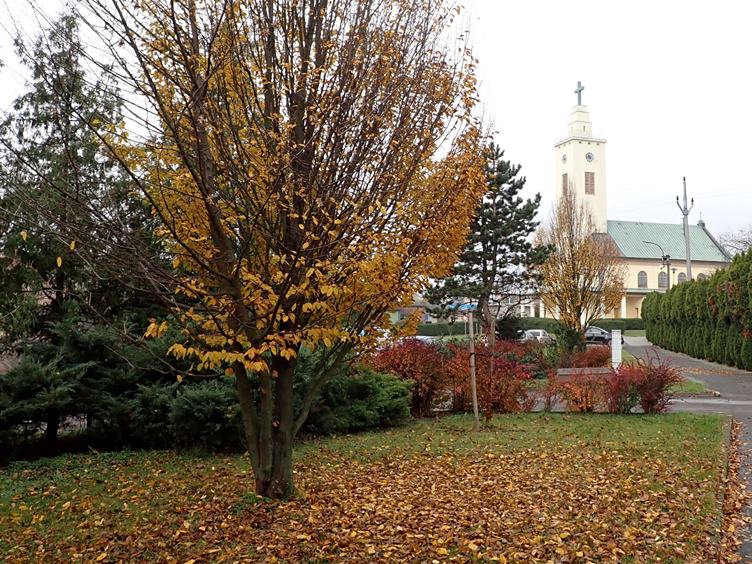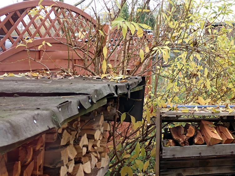 Podzimní barvy u kostela, hřbitova a dřevníku... Kolínka... Víko popelnice na plasty - vlastně víko plastovice :) Pěkně zářící kamna... S baterkou v noci v kuchyni...