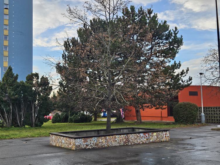 Čtvrtek 20.11.2025 Nejodpudivějši místo co znám, jídelna na Opatově. Reklamy už jsou všude, i na zemi. Bezba doprava před školou. Téhle mozaiky jsem si vůbec nevšimla. Doma. Dnes nám kamarád z Willíka Fanda dojel opravit tu vanu, vzal při tom i WC. Kvalita našeho života se neskutečně zvedla:-)