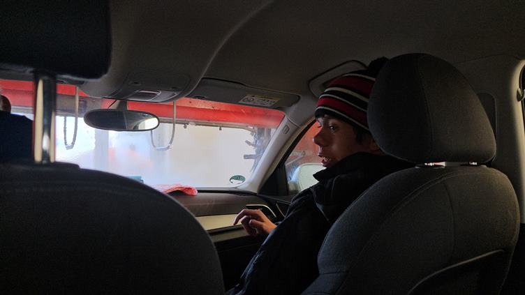 Sobota 22.11.2025 Letní gumy. V myčce. V paneláku obhlídka výtahu. S babičkou na procházce. Na Skále u Doksan (bývalá zavlažovací nádrž). A v Hostěnicích u jezu.