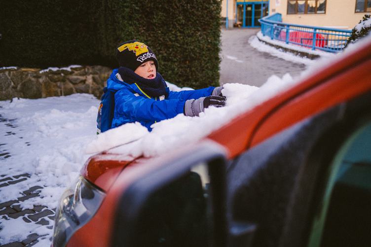 1. Vojta odklízí sníh z auta 2. krásné ranní světlo v ateliéru 3. mamka a taťka 4. staré oblečení do kontejneru 5. návštěva babičky v domově 6. Vojta paří, Míša spí 7. nákupy 8. rodinné foto (ale jsme tam jenom 3 :) 9. čekáme na Vojtu, až mu zkončí kino