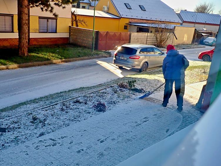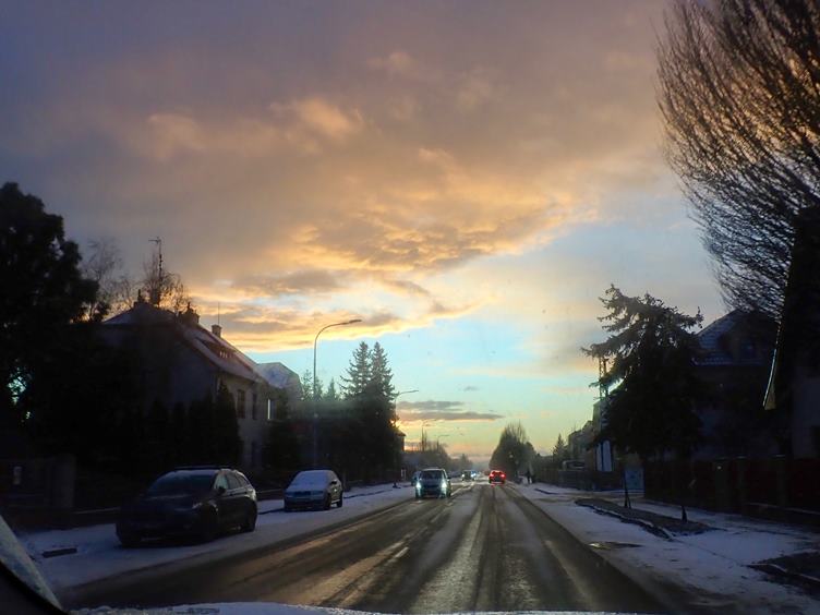 Brzy ráno na dědině... Párky do mikrovlnky... Odklízení sněhu... Pečené kikirikí a šikmé oči - tak jsme říkali kuřeti s rýží... Čekárna na poliklinice, kde jsem byl na prohlídce kvůli řidičáku... Žluté stopy na bílé čáře... Sousedka za pultem v masně v Penny marketu... Kolo před Penny... Obloha na Rymicemi...