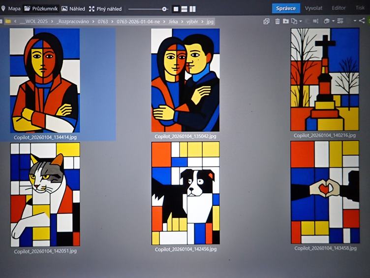 Světelné odrazy z protějších oken... Jirka a Hanička na procházce... S Jirkou a Ondrou na nákupu-výletě v Kostelci u Holešova a v Karlovicích... Večer ještě dárečky od stromečku a teramisu... A v Gemini upravené fotky Haničky, Jirky, kříže, kočky, psa a srdíčka ve stylu Pieta Mondriana...