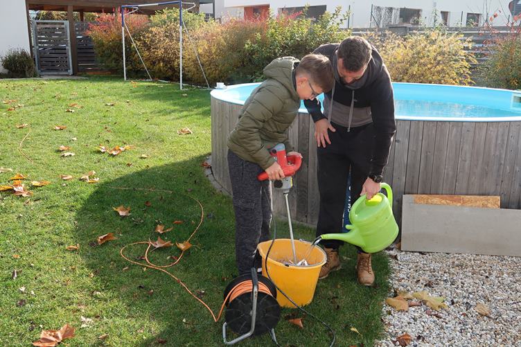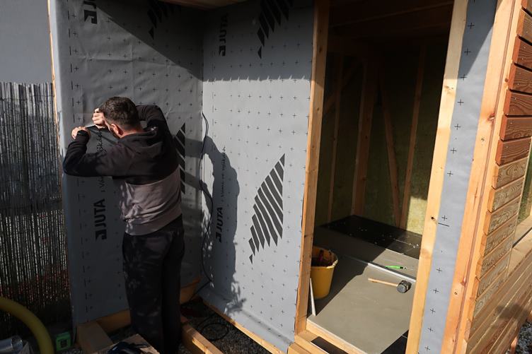 Ráno mám budíček, jedu do Budějc dělat dlažbu do sauny
