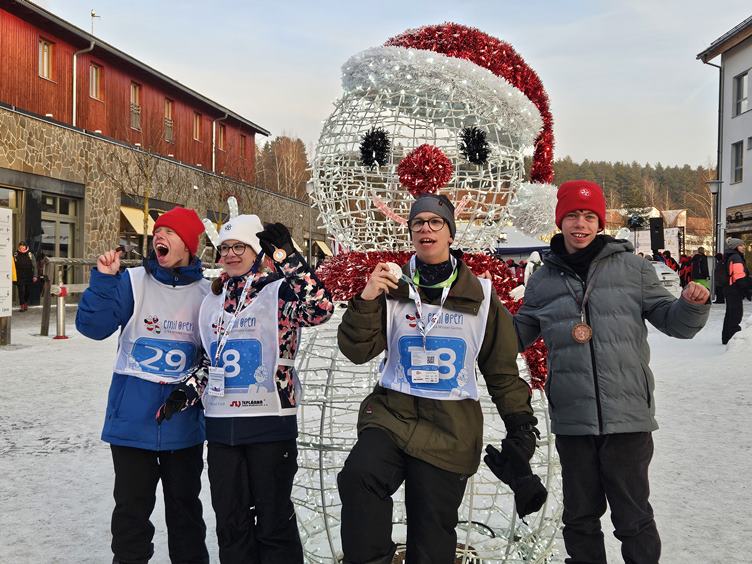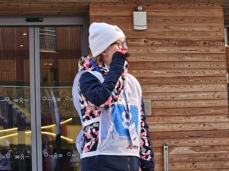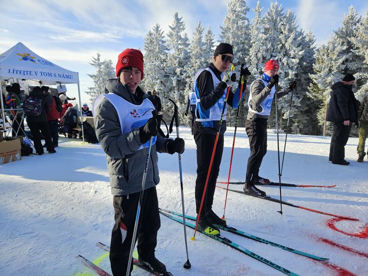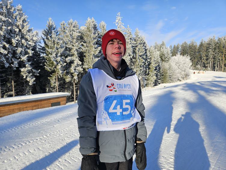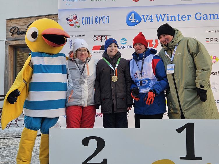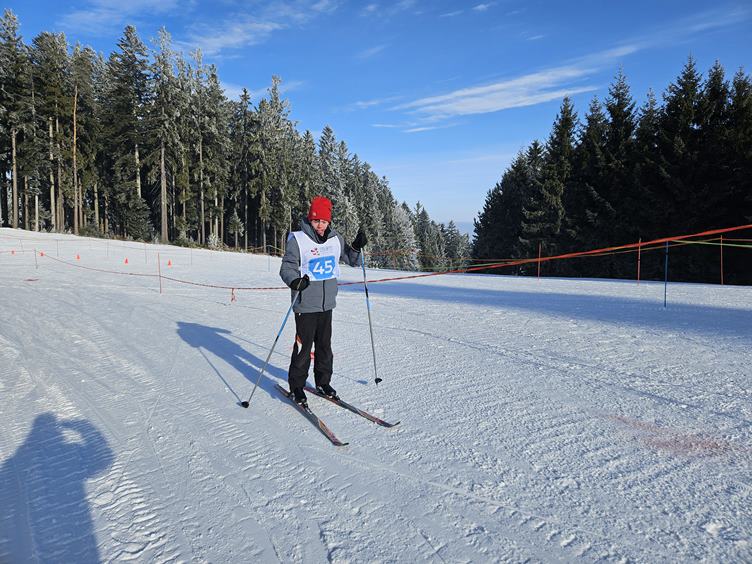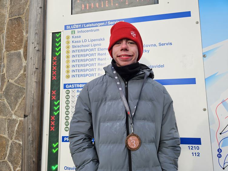 Pátek 23.1.2026 Dnes se jedou finálové jízdy. Proti dvěma vlčákům nemá Bart šanci, ale oběhne to a máme první bronz! Quido přidá stříbro, Kuba je taky třetí a Veru čtvrtá. Na předávání medailí Bárta nedostanu, ale dívá se aspoň z tepla z blízké výlohy přes sklo. Emil je nejfotografovanější objekt dne. Večer slavíme.