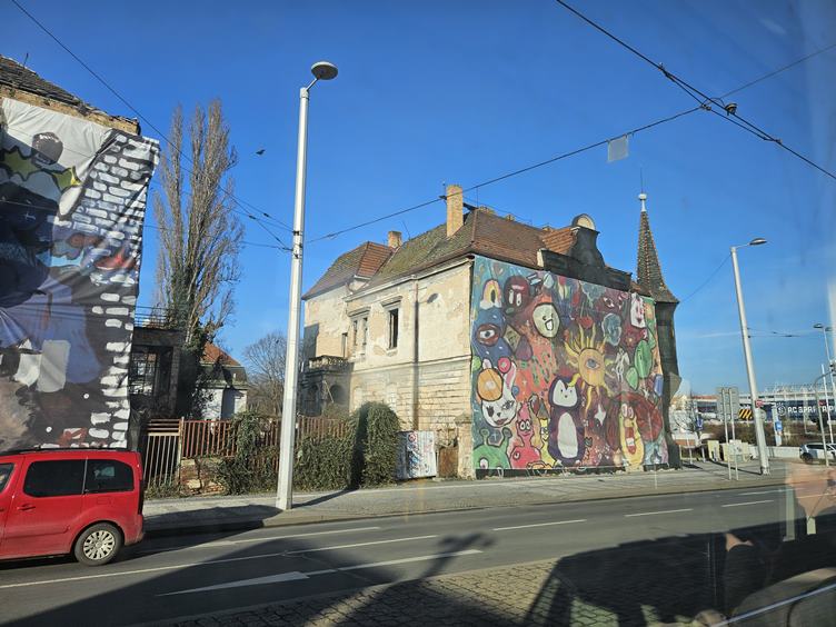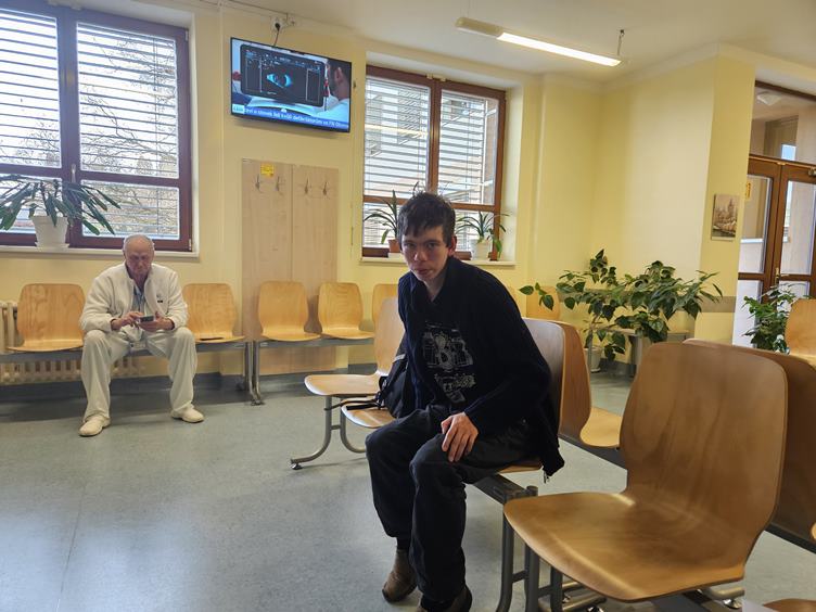 Úterý 10.2.2026 Lékařský den I. Potkali jsme anděla strážného. Psí louka ve vojenské nemocnici. Jdeme na endokrinologii. Nová paní doktorka je fajn. Pak přesun na kožní s vyrážkou. Čekáme dlouho, odcházíme s recepty. Po dlouhé době vysvitlo sluníčko. Domů tramvají a pěšky, fotky z Letné a Vltavské. Ve výtahu.