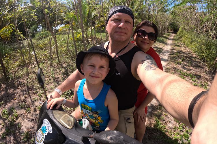Jedeme člunem na ostrov Saona ( hrozně to skáče )... potkáváme veselou polskou rodinku... ubytujeme se ve vesnici hned vedle kurníku...půjčíme si rozpadlý skútr a děláme průzkum ostrova, kde se natáčeli PIRÁTI Z KARIBIKU... večer do kostela :-)