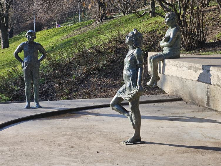 Ráno pošmourno. Vystupuju ja hlavním nádraží, pořád je to tu dost odpudivé. Po půldenním homeoffice potřebuju pohyb, tak po škole s Bártem míříme na Folimanku. Housle mě zaujaly cestou. Pod Nuselákem je fakt pěkně, úplně mě to překvapilo, naposledy jsem tu byla asi před čtvrtstoletím. Výhledy, hřiště, sochy, graffiti.