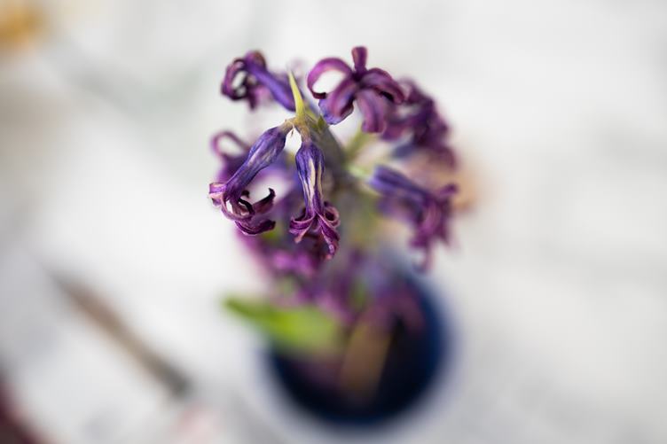 Hyacint odkvetl. Zase práce s jizvami. Vřes mi letos dělá radost. Vyrazím ven. Mezi tím se vypralo prádlo. Když máme to MDŽ, tak se rozšoupnu. A trošku se zkrášlím. Další myšlenky potřebuji dát na papír. Je třeba pro sebe něco dělat.
