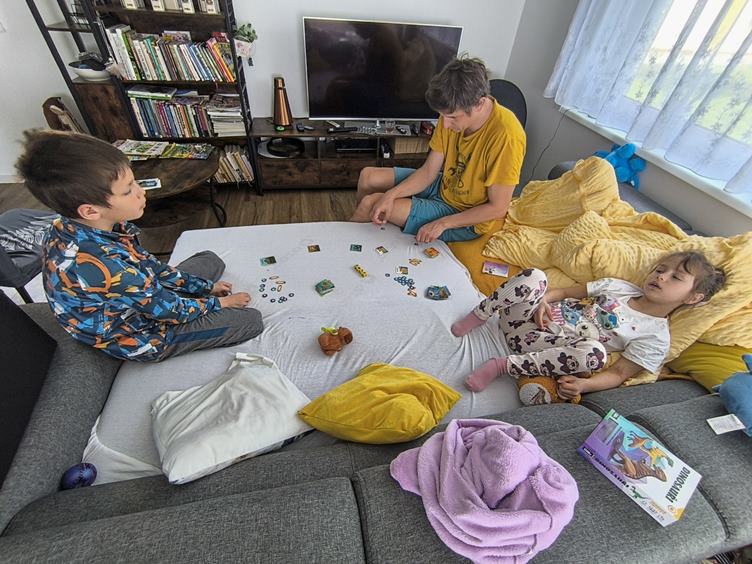 (1) Tak je to tady, i Laduška dostala plané neštovice, ale s horším průběhem (2) Snídaně (3) Musíme topit (4) Dopolední aktivity (5) Čtu si (6) Oběd (7) Radim nám opravuje postele (8) Kafe (9) Všichni odjíždějí
