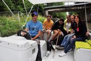 Maťa s kamošmi idú dnes na Baťák. Prvý raz na motorovú loď. Doteraz sme jazdili len na kánojkach. 1. Posledná porada pred plavbou v Skalickom prístave. 2. A tu už sú v plavebnej komori v Petrove. 3. V Strážnickom prístave som si ich stopla a zaviezli ma až k vodnej križovatke Baťáku s Veličkou. Viezol nás pirát Boris :o). 4. Nechávam ale decká v Strážnici a idem späť tento raz na Výklopník do Sudoměřic. Grilovalo sa. 5. Bola aj cimbálka. 6. A tu už prichádzajú piráti. Povedala som im aby išli touto cestou pod mostom, že sa pod mosto dajú.... No bola som aj ja v napätí, ale dali sa :o). 7. Piráti majú svoj program a ja sa ešte vydávam na bicykli na krátky výlet, najprv na najvyšší bod v okolí - Veterník. 8. Potom sa fotím na samospúšť u golfáču. 9. A naposledy jedna selfie u starenky na dvore :o)