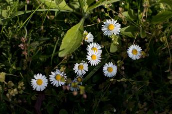 Krásné ráno. Cyklistů plno. Před prací nám vykvetl koberec ze sedmikrásek. Z práce uháním do školky, na sbor. Kouká na mě medvěd a pes hlídá, jestli zpívám dobře. Domů si vezu zadek v autě a jsem za to dost ráda. Dopuji se cukrem, ale stejně únavu nepřebiji.