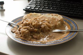 Tramvaj a vlajky - běžné ráno. Segedín k obědu. Hora faktur na založení. Přes hodinu hovor se ségrou. Cvičit se mi moc nechce. Vařit také ne, takže segedín k večeři. Vyčistit zuby a spát.