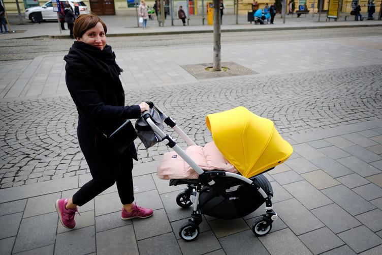 Zkouška kočárku. Nákup v Globusu. Miníkovi za jízdy ulétla lišt :-( Čerstvý chléb je v Globusu fakt dobrej. Krmení je dlouhá záležitost. Pstroužek a bramborové pyré. Kočárek frčí a Šárka mi ho skoro nechce půjčit :-) Nákup v Letmu a jde se domů. Stelinka leze stále víc a víc!