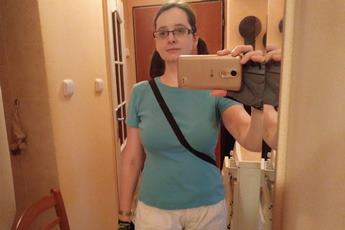 Po snídani makám, abych mohla vyrazit. Náhodou jsem hmátla po barvách Protonu. Ach jo, mohla jsem jít s kamarádkou do divadla, vyrazit na sraz WOL, v neděli na koncert pro Romka a v pondělí na křest CD... jenže to nejde... Trošku mi to leze na mozek... Pod Bulovkou mě dnes potkala kolegyně a byla tak hodná, že mě svezla k Protonu autem. To mi zlepšilo náladu. Vůbec jsou kolegové a kolegyně ochotní - podrží dveře, donesou ke stolu oběd atd. Před odchodem koukám na Vasyla, jak seká trávu. Z tramvaje vidím cyklistku a nadšeně jí fotím, ale mobilní foto mě neuspokojuje. Nejhorší dnes byla půlhodinová grilovačka na jedné noze, kdy mi nejela další tramvaj a lavička byla jako rozpálená plotna. Nakonec jsem musela vyrazit pěšky. Umýt a odcvičit jsem ještě zvládla, ale spát jdu bez večeře - tu už nezvládnu připravit.