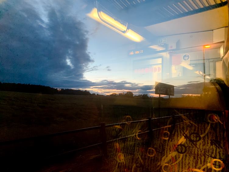 Výzdoba U Hasičů. V lázních si dávám poslední Birell a jedeme na Svinov. Přijela se se mnou rozloučit Andrejka, dáváme si kávu v Laura coffee :-) Odpočinek před dlouhou cestou. Tak tady příště zaparkuji. Spolucestující 1 z Ostravy do Přerova, cestující 2 (bratr Falca :-) ) z Přerova do Chocně. Úžasný západ. Cestující 3 z Chocně do Náchoda. V Ostravě jsem nechala růžové brýle... :-(