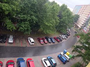 Dopoledne. Jedu na nákup do Tesca. U pole za Tescem. Lije. Oběd. Vyrážím do práce. Podchody na Frýdlantských mostech jsou plné vody. Vážení. Staré hity potěší.