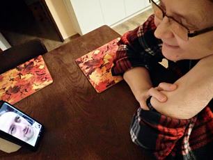 Autoportrét pod záclonou... Klacíky na zátop... Mrzlo, a proto jsem projel auto... Osmahnuté rohlíky do polévky... Krůtí stehno... Sladkosti ke kávě... Talíř a hrnek... A videohovor s Viki a Jindrou v mexickém Cancúnu...