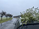 Pozdní namočení hrachu. Poslední obrázek adventního kalendáře. Štědrodenní procházka krajinou. Výše do kopců, kde hustě sněží. Jedlové větve, jmelí, šípky. Zplanělá hruška. Šťastný pes i já, na vodě, ve větru, sami. Na cestě. Odpoledne a večer s rodinou, jak má na Štědrý den být.