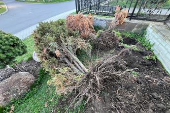 Přijedeme do Tasovic a děda Franta akorát vytrhává uschlé túje traktorem, tak jdeme pomáhat. Je krásné počasí, takže je nám to příjemné.