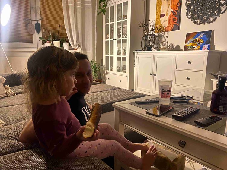 ranný oddych pri káve * v záhradnej chatke * sedím na hojdačke * povzbudzujem magnóliu * a tieto moje krásne "beličky" * prišli aj dievčatá a je nám treba sa zohriať * potom ešte zbierame kvetinky * malá noclažníčka * a už je aj okúpaná a môže debatiť s dedem