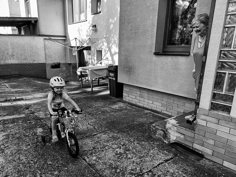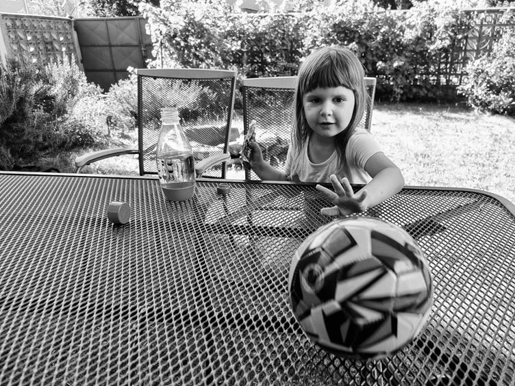 1. Moje oblíbené ranní stíny poznamenalo včerejší žehlení 2. Anežka teď jezdí na kole a já za ní běhám 3. Letos máme i maliny 4. Díky opravě na Moravské je kolem našeho domu objížďka, ale taky o dost snížený provoz 5. Fili si dal před obědem opět chrupeček 6. A já koupel 7. Injekce mi do bříška musela aplikovat Pavla, já se na ten pupek nemohl koukat 8. Koupil jsem Anežce na Albertu za body nový balon 9. Večerní zábava u telky