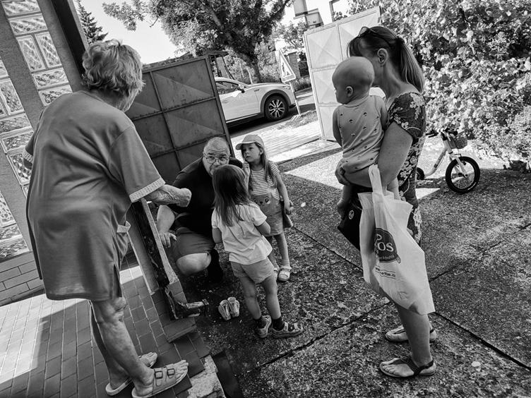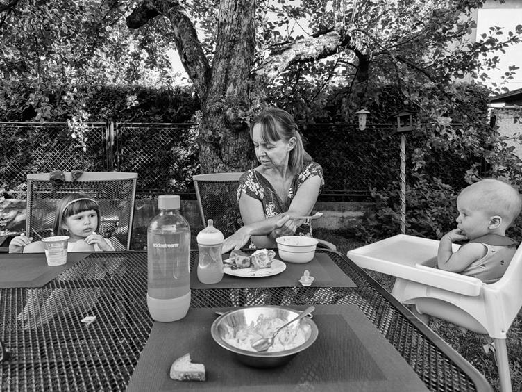 1. Náš malý ochrapa se probudil, najedl a zase usnul 2. Takhle prázdno je před školkou na parkovišti málokdy - dnes se bude opravovat 3. Tahle troška prášku by stačila na koupání mojí opravené části na celý rok 4. Anežka ze školky přivedla kamarádku Anežku a protáhla ji celým barákem 5. Chudák její tatínek trpělivě čekal venku 6. My jsme si pak dali večeřosvačinu venku 7. Filda dlouho dojídal 8. Anežka zalévala naše plantáže 9. Já sklidil a do mrazáku nachystal libeček