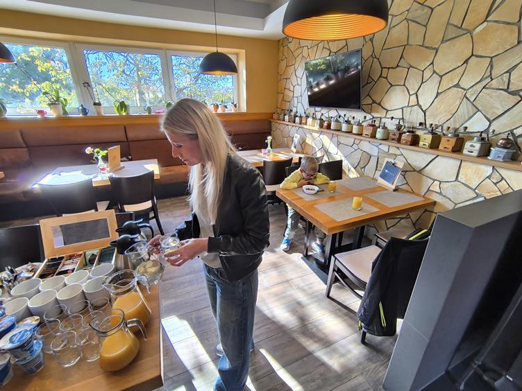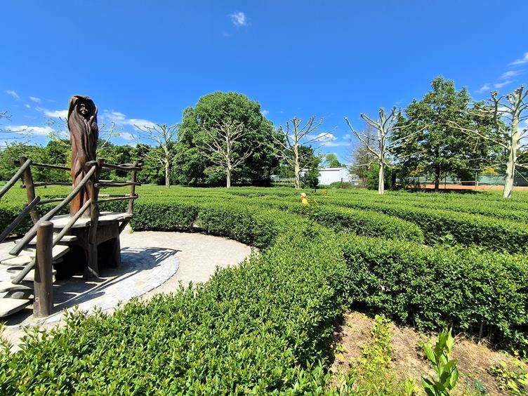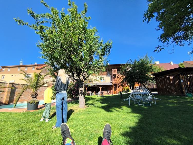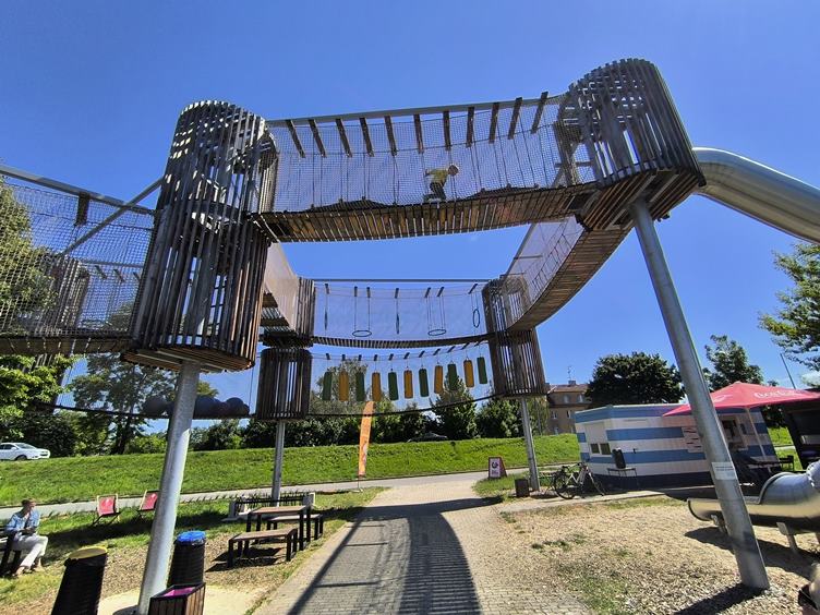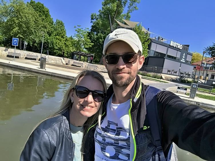 Po snídani ještě dopoledne zůstáváme - příjemné místo. Ve Veselí nad Moravou se nám kolem přístavu tak líbilo, že tam dnes jedeme "na výlet". Maximek je v lanovém centru ve svém živlu a mi se mezitím trošku projdeme po blízkém okolí. Do nedalekého parku a tamního bludiště už jdeme zase všichni. Na zpáteční cestě zas čekáme na jídlo.. :-D Lahev včera zakoupená, dnes dopitá. Mno víkend trošku unavil.